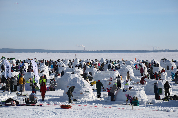 Почти тысяча участников собралась на пляже «Бумеранг» для того чтобы посоревноваться в снежном строительстве на скорость, качество и антураж зимних жилищ. Программа фесиваля «Иглу 2026. Город эскимосов» была довольно насыщенна участники и гости могли не только строить свои иглу, но и посетить мастер‑классы по снежному зодчеству, покататься на северных оленях и собачьих упряжках, взять уроки кайтинга и зимнего туризма.